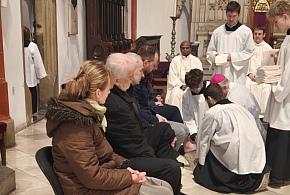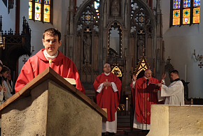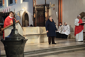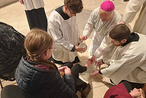 Biskup Jan Vokál vedl v katedrále Svatého Ducha bohoslužbu Zeleného čtvrtku, včetně obřadu umývání nohou.
