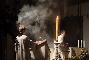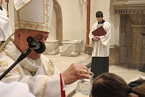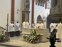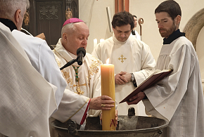 Biskup Jan Vokál vedl v katedrále Svatého Ducha bohoslužbu Zeleného čtvrtku, včetně obřadu umývání nohou.