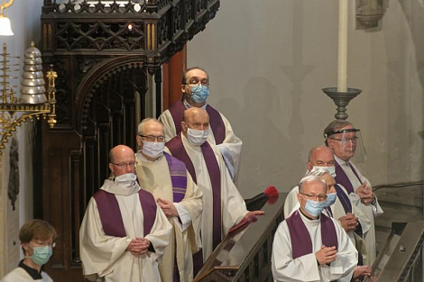 Requiem za 23. královéhradeckého biskupa odsloužil 23. května dopoledne v katedrále Svatého Ducha kardinál Dominik Duka.
