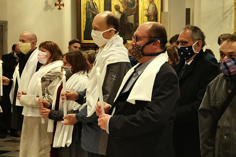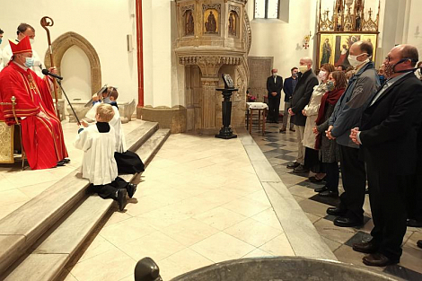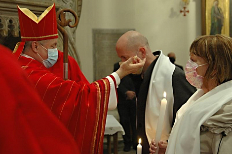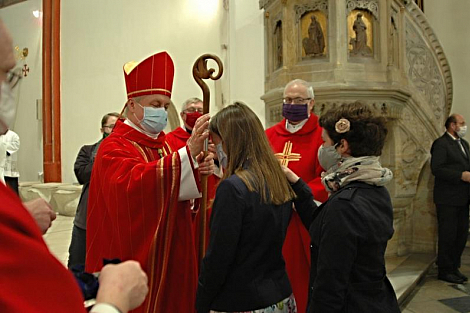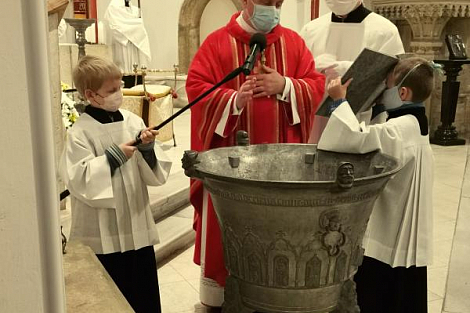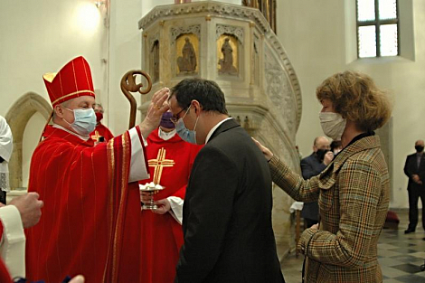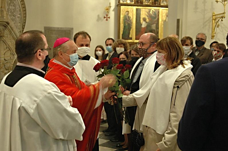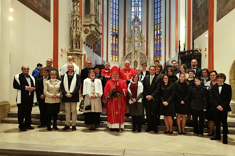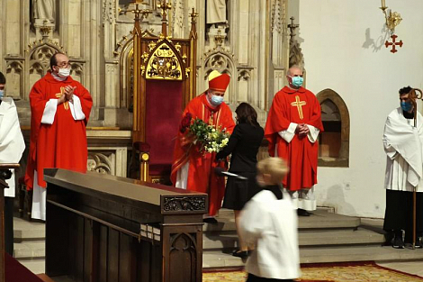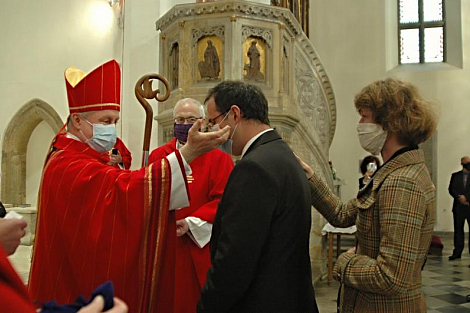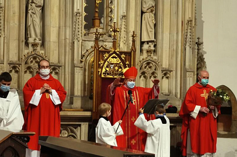 Královéhradecký biskup Mons. Jan Vokál udělil v katedrále Svatého Ducha svátost křtu pěti katechumenům a svátost biřmování pak celkově čtrnácti biřmovancům.