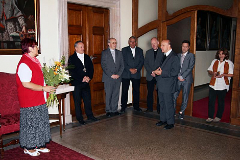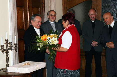 Biskup Jan Vokál slaví na konci září 55. narozeniny. Pracovníci diecézní kurie mu během pátečního dopoledne již dopředu popřáli pevné zdraví a hojnost Boží milosti do dalších let.