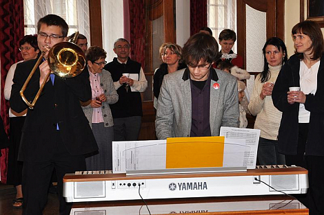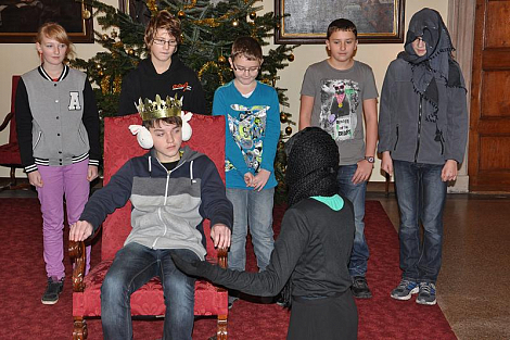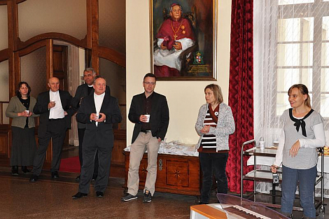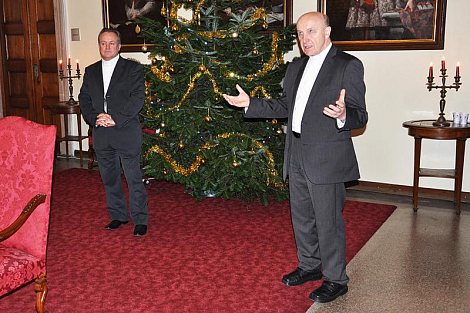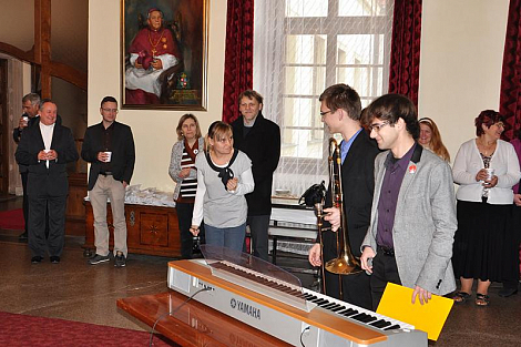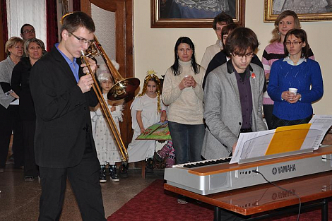 Po pravidelné středeční Mši svaté pro diecézní kurii se pracovníci biskupství setkali ve foyer u sochy sv. Vojtěcha, aby si navzájem popřáli k blížícím se vánočním svátkům. K neformální atmosféře přispělo i vystoupení žáků z Církevní základní školy Jana Pavla II., kteří si přichystali scénku z díla Král Lávra od českého klasika Karla Havlíčka Borovského. Biskup Jan Vokál zaměstnancům poděkoval za práci v uplynulém roce a popřál požehnané prožití oslavy Kristova narození. Na závěr všem udělil požehnání.