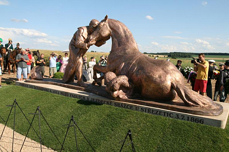 Požehnání figurálního pomníku jezdecké srážky 1866