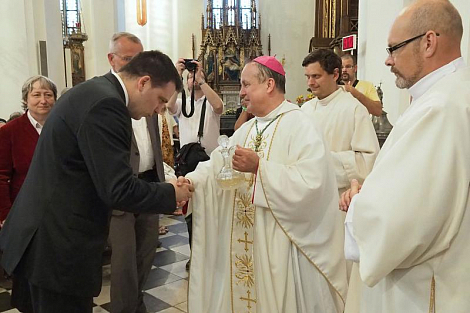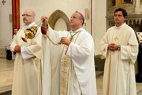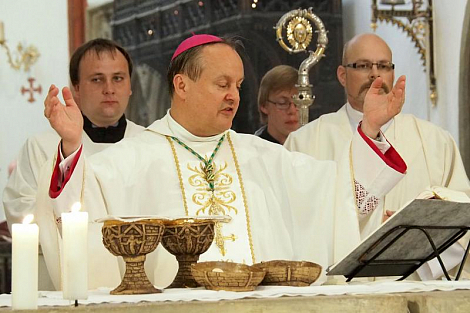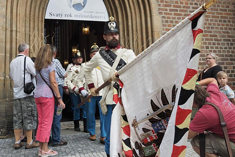 Jedním z pilířů akcí v rámci 150. výročí bitvy u Hradce Králové, se stala pontifikální bohoslužba, kterou odsloužil v sobotu ve 14 hodin královéhradecký sídelní biskup Jan Vokál, za účasti dalších pozvaných českých i zahraničních biskupů. Mše byl přítomen primátor Hradce Králové Zdeněk Fink a další zástupci veřejného života v České republice. Svoji přítomností poctil Hradec Králové i rodák, kardinál Dominik Duka, který z presbytáře pozdravil Hradečany. Zcela zaplněný chrám zpíval při úvodu obě sloky státní hymny Kde domov můj a na závěr pak Svatováclavský chorál.
