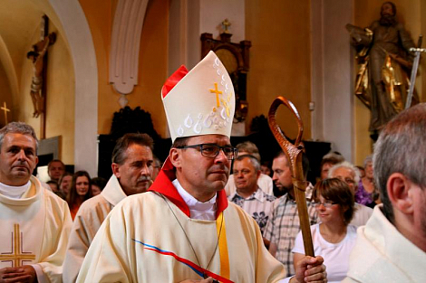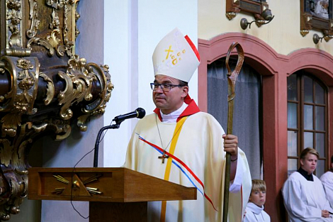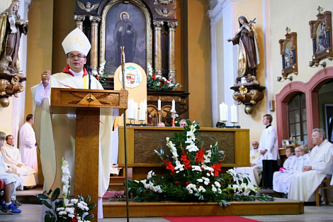 Mons. Tomáš Holub, biskup plzeňský, odsloužil mši svatou ve své rodné farnosti.