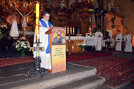 Slavnostní mši svatou při příležitosti 100. výročí zjevení Panny Marie ve Fatimě celebroval biskup Mons. Josef Kajnek.