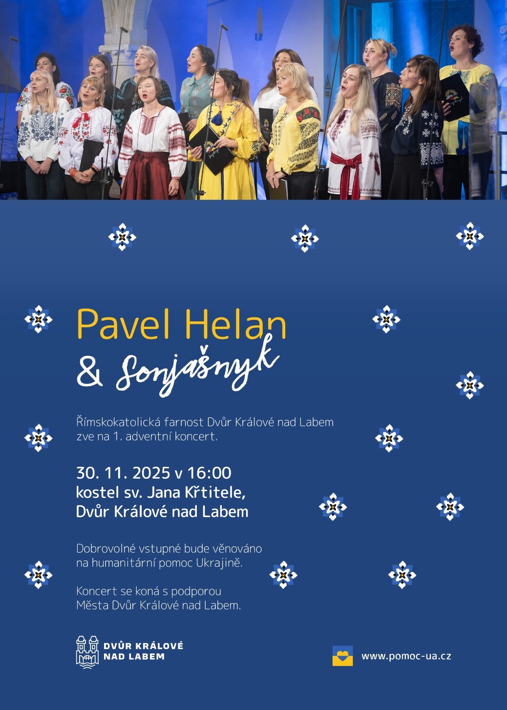 Pořádá Římskokatolická Farnost Dvůr Králové nad Labem za podpory Města Dvůr Králové nad Labem https://youtu.be/X6sCzULZkmY?si=JiDTtY7lfxkWjd6P https://pomoc-ua.cz/ https://www.facebook.com/p/Sonja%C5%A1nyk-100091640342373/