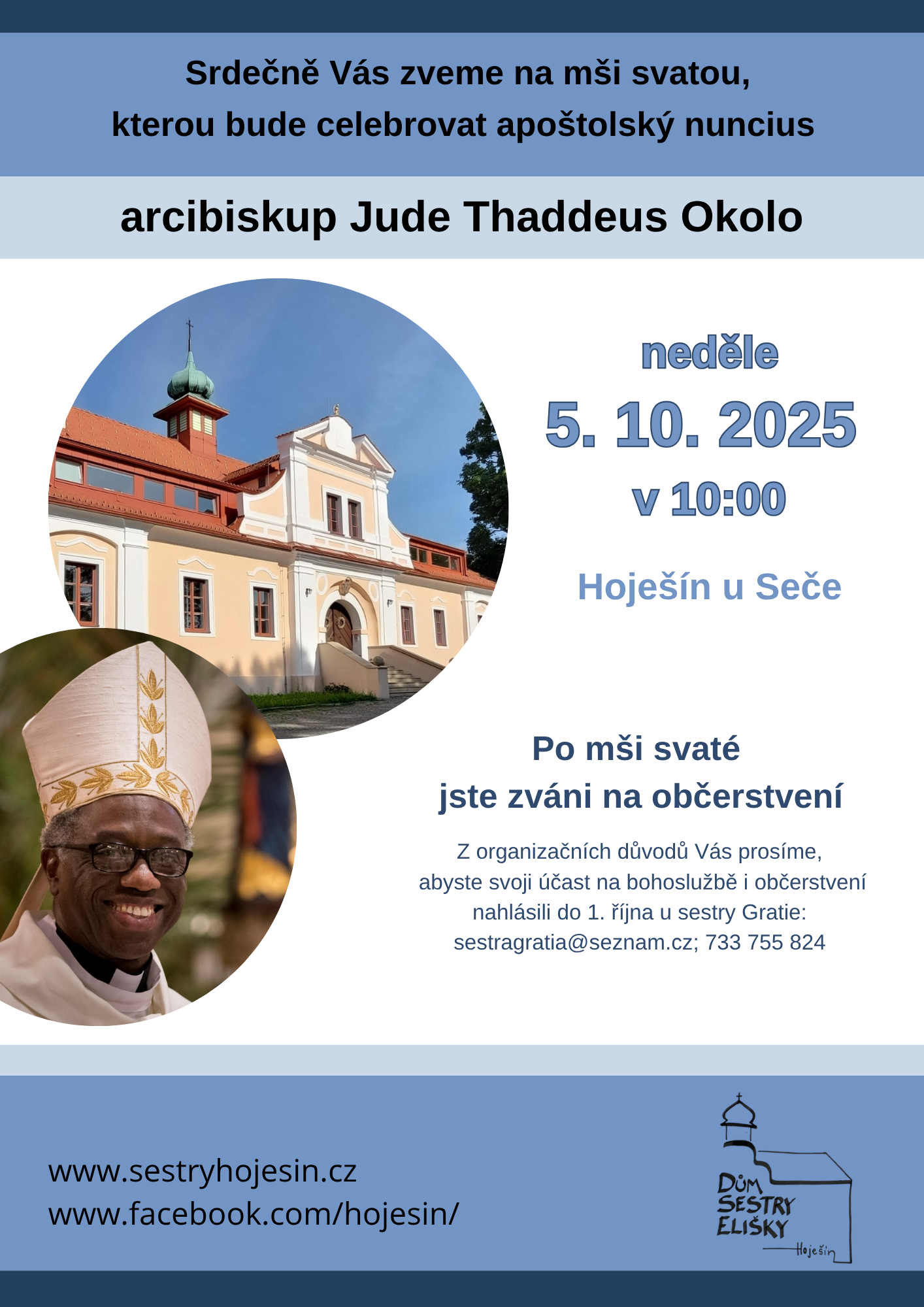 Mši svatou bude celebrovat apoštolský nuncius P. Jude Thaddeus Okolo.