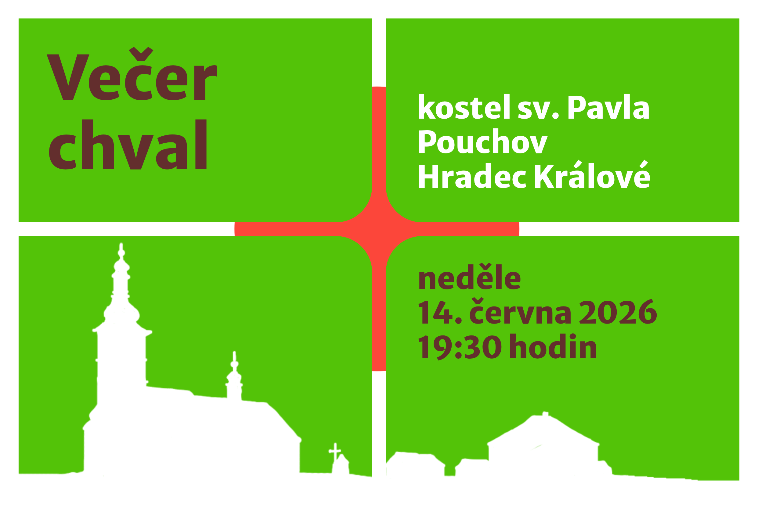 Večer chval v kostele sv. Pavla v Hradci Králové na Pouchově doprovází hudba a zpěvy chválové skupiny pouchovské farnosti a jejich přátel. Přijďte!