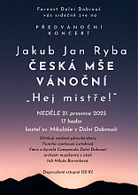 Srdečně zveme po devíti letech do Dolní Dobrouče na Českou mši vánoční Jakuba Jana Ryby. Účinkují smíšené pěvecké sbory Familia cantorum Letohrad, Fénix a bývalá Campanula Dolní Dobrouč, orchestr muzikantů z okolí, řídí Miluše Barvínková. Doporučené vstupné 150 Kč