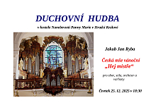 Ve středu 24. 12. 2025 na Štědrý den přede mší sv. v 15:45 zazní tradiční koledy v úpravě Karla Steckera. Ve čtvrtek 25. 12. 2025 na slavnost Narození Páně bude při večerní mši sv. v 18:30 hodin provedena Česká mše vánoční „Hej, mistře“ od Jakuba Jana Ryby. Tato mše bývá každoročně ozdobou mnoha vánočních koncertů. Nejlépe však vyzní v autentickém prostředí – v rámci slavnostní vánoční liturgie.