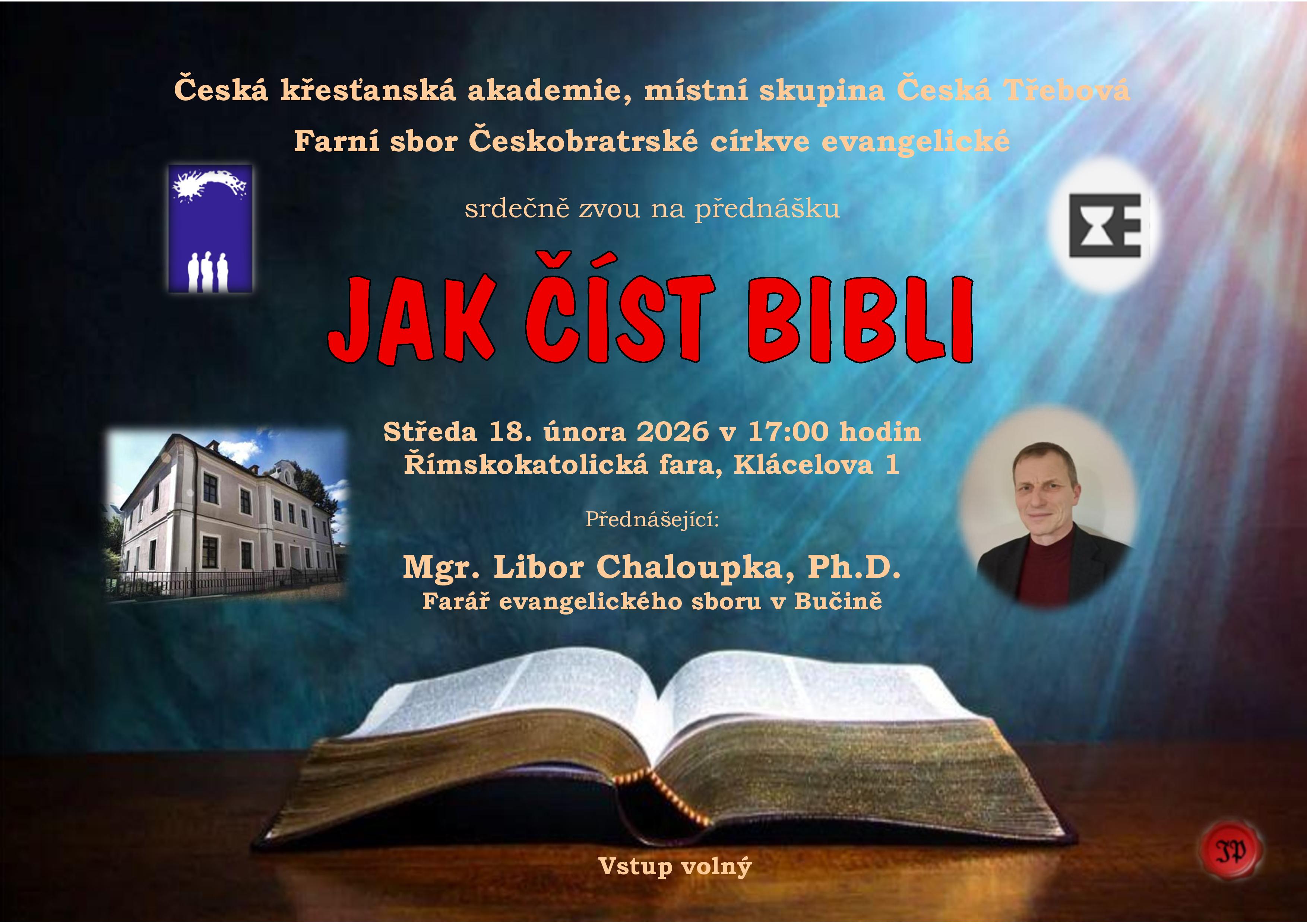 Česká křesťanská akademie, místní skupina Česká Třebová, farní sbor Českobratrské církve evangelické srdečně zvou na přednášku.