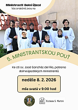 Ministranti Vás srdečně zvou na pátou ministrantskou pouť, k patronu - sv. Josému Sanchezovi del Río, kterého si sami zvolili během soustředění v srpnu 2021. Ministranti z farnosti Dolní Újezd si v létě 2021 (během soustředění) zvolili svého patrona - sv. José Sánchez del Río (28. 3. 1913 - 10. 2. 1928). Liturgická vzpomínka je 10. 2. Poutní mše svatá se uskuteční v neděli 8. února 2026 od 9:00 hod.