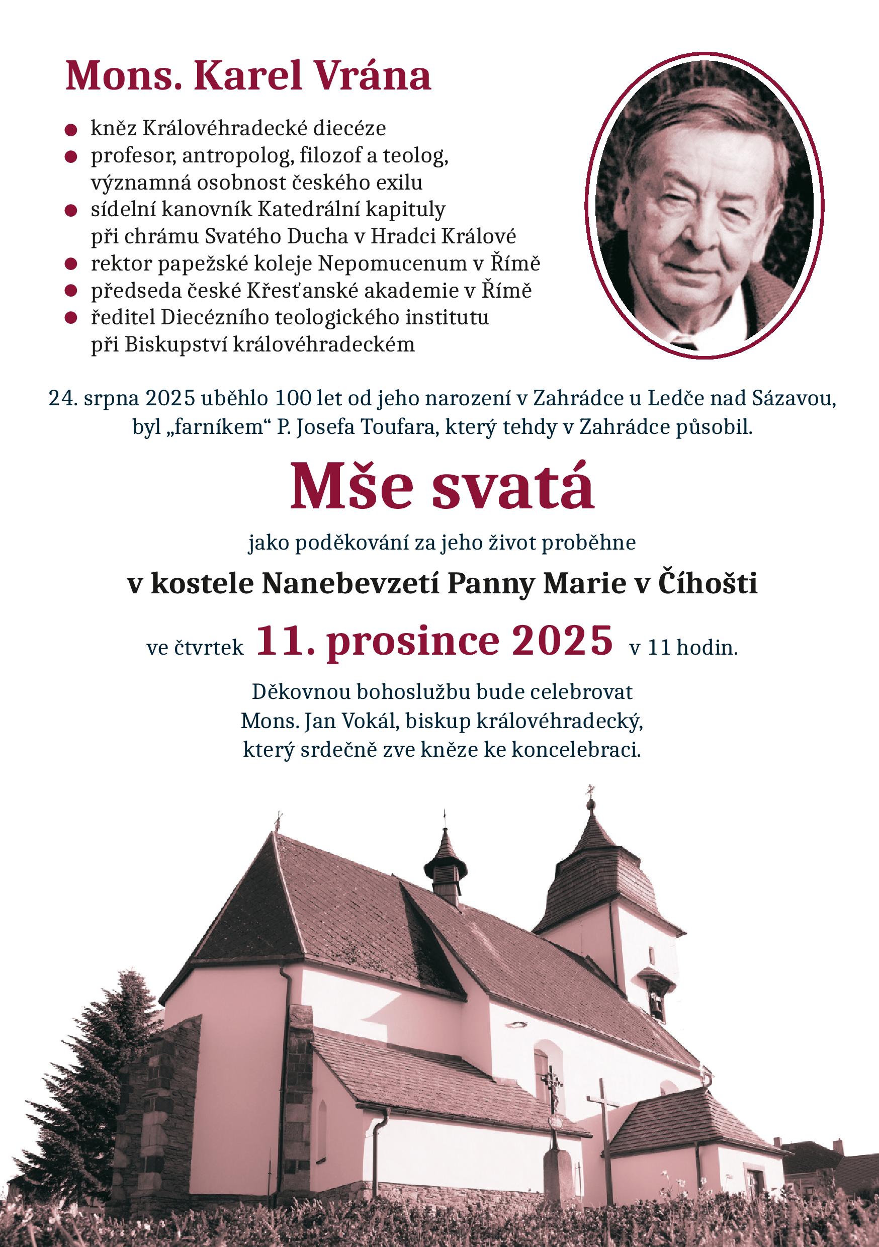 24. srpna 2025 uběhlo 100 let od jeho narození. Děkovnou bohoslužbu bude celebrovat biskup Mons. Jan Vokál.