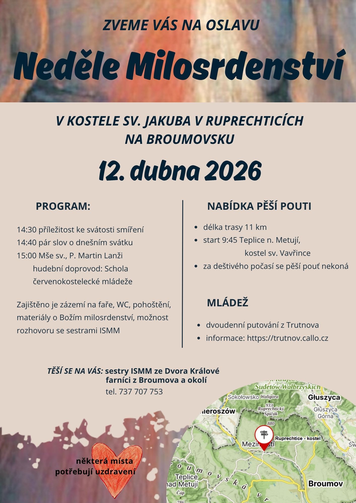 Pozvánka do kostela sv. Jakuba v Ruprechticích na Broumovsku.