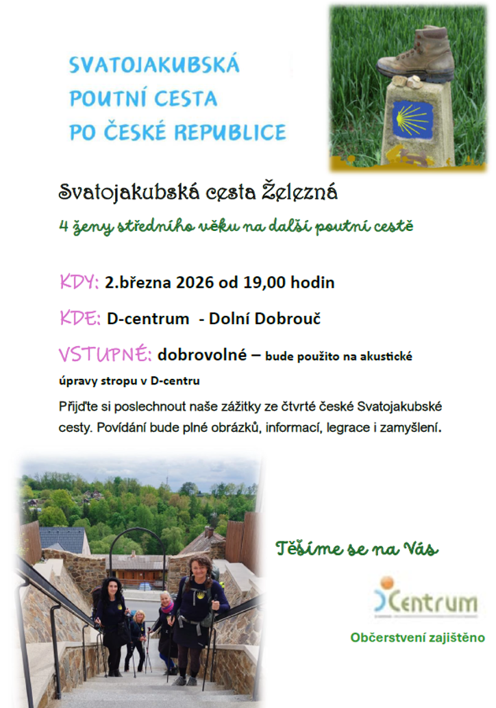 Přijďte si poslechnout zážitky z putovní čtyř žen středního věku ze čtvrté české Svatojakubské cesty. Vstupné dobrovolné, občerstvení zajištěno.