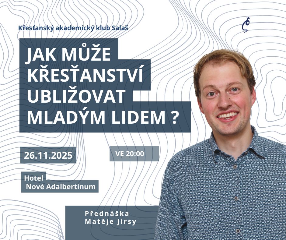 Přijď si mezi školními povinnostmi vydechnout a poslechnout si zajímavou přednášku. Po studentské mši nás čeká setkání s knězem Matějem Jirsou, který otevře téma, o němž se moc nemluví — jak může křesťanství mladým i ubližovat. Zveme Tě na večer upřímného povídání, které může přinést víc porozumění i klidu.