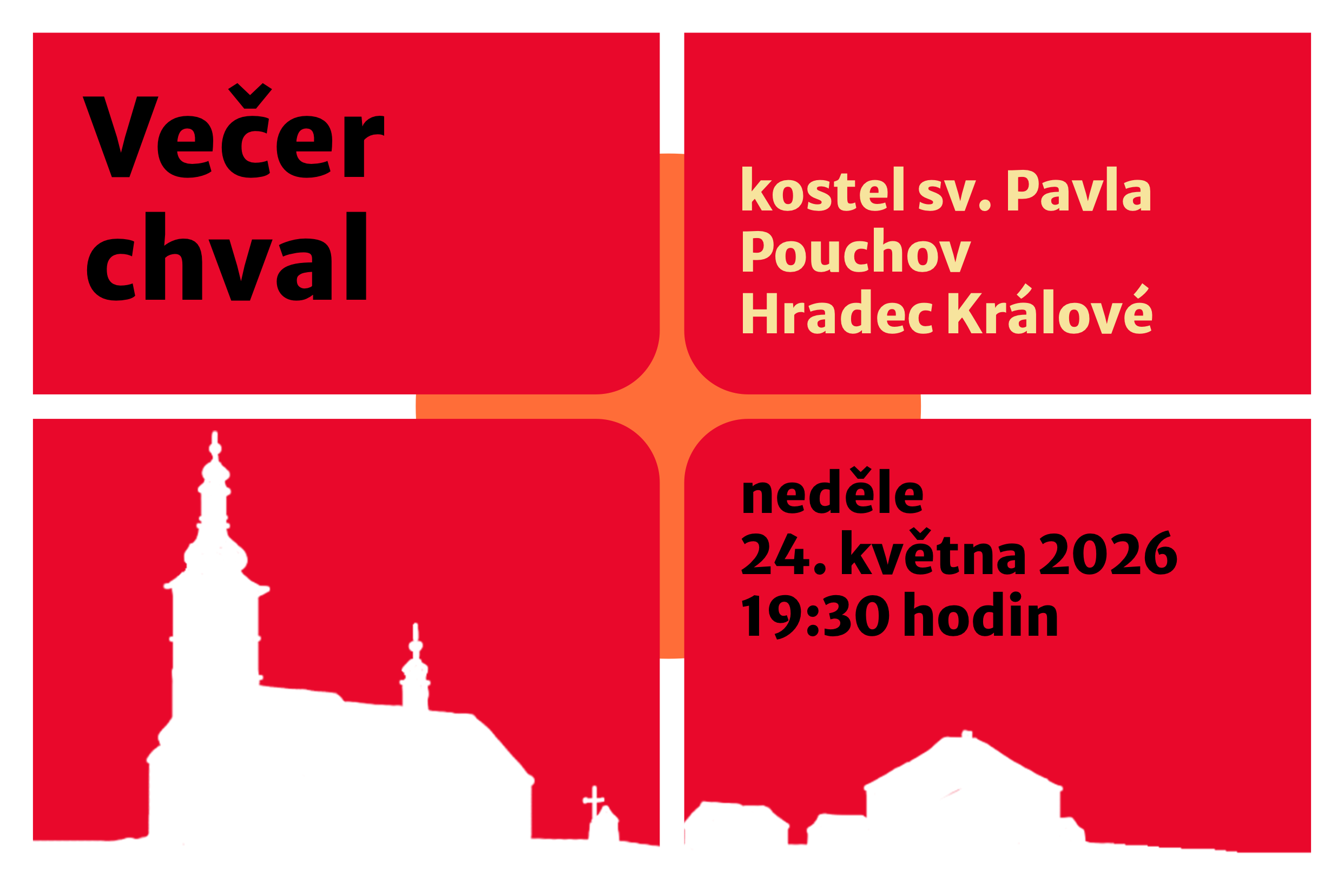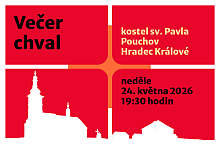 Večer chval v kostele sv. Pavla v Hradci Králové na Pouchově doprovází hudba a zpěvy chválové skupiny pouchovské farnosti a jejich přátel. Přijďte!
