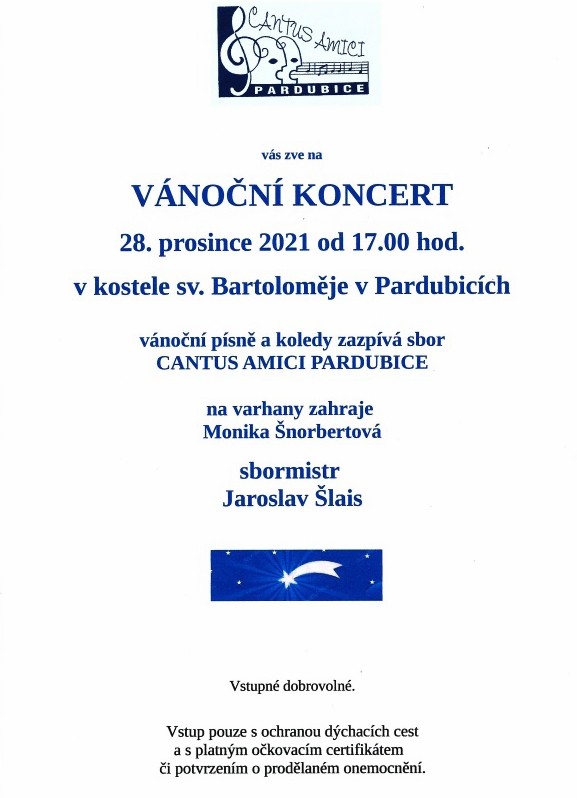 Vánoční písně a koledy zazpívá sbor Cantus Amici Pardubice.