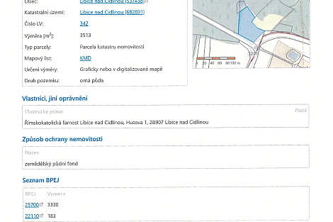 - pozemková parcela p. č. 566, v druhu pozemku orná půda, ZPF, o celkové výměře 3 513 m2