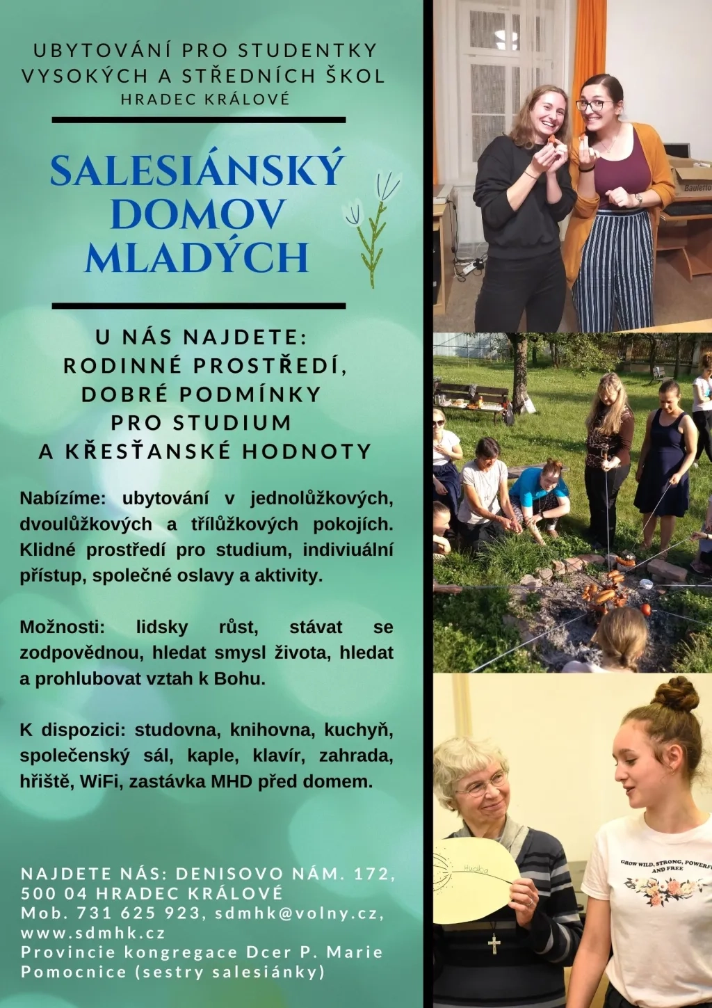 Do řady jubilantů se k jiným zařízením v diecézi, které si toto výročí připomínaly vloni, přidává letos i Salesiánský domov mladých (SDM) v Hradci Králové – Kuklenách. SDM v současnosti poskytuje klidné ubytování a možnost života v křesťanském prostředí téměř šedesáti středoškolačkám a vysokoškolačkám, které přicházejí studovat do Hradce Králové. V roce 1993 byl založen jako Církevní dívčí internát (CDI) zejména pro dívky z Biskupského gymnázia. Během let se na čas stal Církevním domovem mladých (CDM) a od roku 2015 je církevní právnickou osobou, kterou zřizují sestry salesiánky (Dcery Panny Marie Pomocnice).