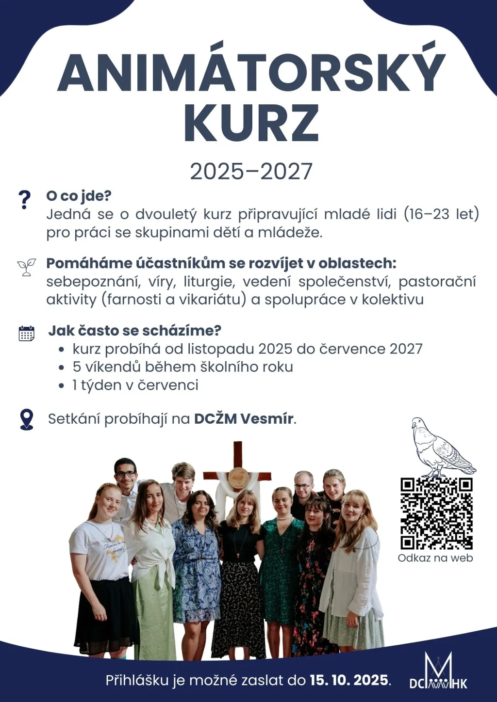 Přihlašování na nový animátorský kurz 2025 – 2027 probíhá do 15. 10. 2025. Přihlášku, termíny setkání a další podrobnosti najdete na diecézním webu ZDE.