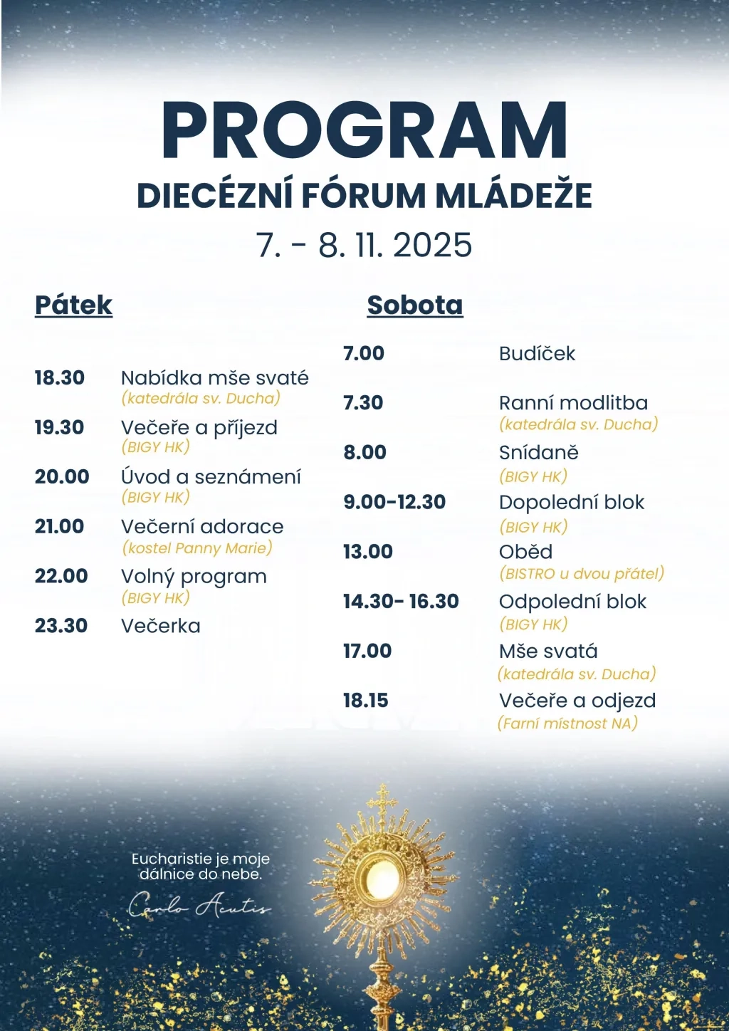 Program níže. Motto: Eucharistie je dálnice do nebe...
