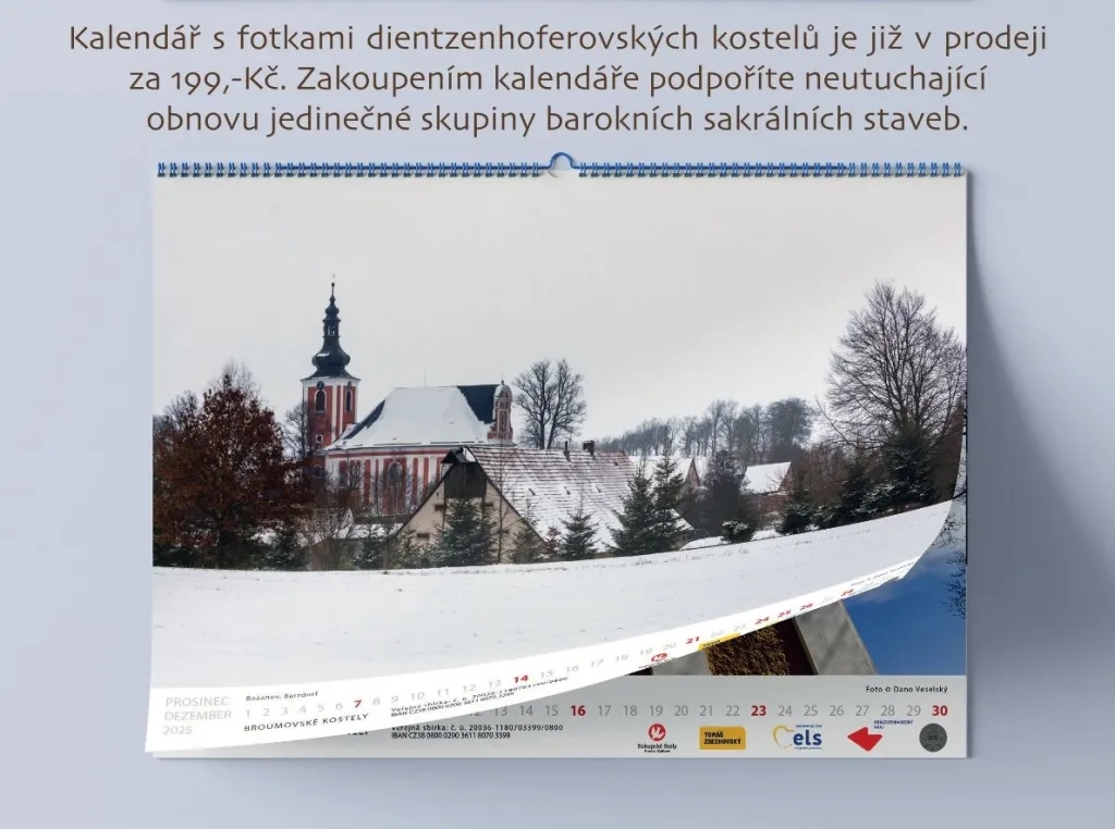 Zakoupením kalendáře podpoříte obnovu výjimečných sakrálních staveb na Broumovsku.