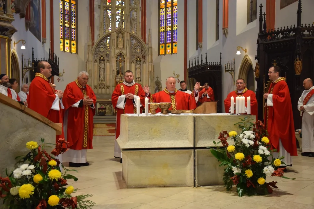 Ze všech koutů diecéze přijeli do katedrály Svatého Ducha kněží a jáhni, aby utvořili společenství se svým biskupem.