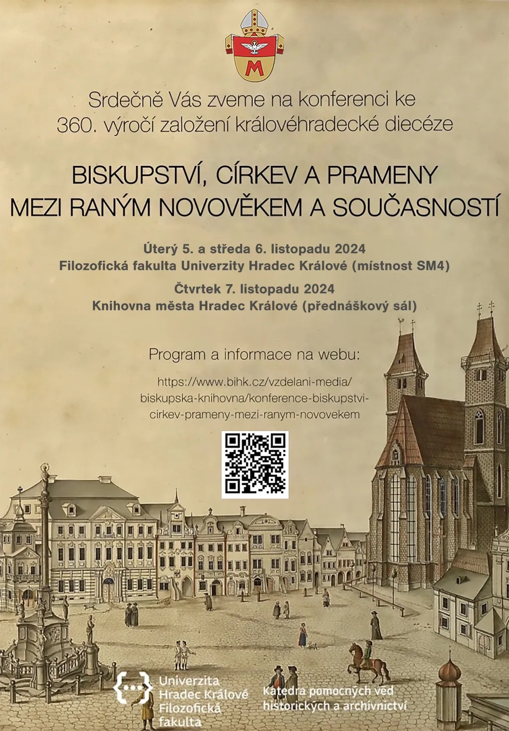 U příležitosti 360. výročí založení královéhradecké diecéze pořádají Biskupská knihovna Biskupství královéhradeckého ve spolupráci s Filozofickou fakultou Univerzity Hradec Králové ve dnech 5. až 7. listopadu 2024 mezinárodní konferenci Biskupství, církev a prameny mezi raným novověkem a současností.
