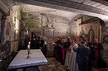 Ráno prvního dne národní pouti do Říma, která se koná ve dnech 28.–30. března 2025, zahájili čeští a moravští biskupové modlitbou u hrobu svatého Cyrila v bazilice sv. Klimenta. Místo, kde je pohřben jeden ze slovanských věrozvěstů, má pro české věřící zvláštní význam – připomíná kořeny křesťanské víry na našem území i dar slovanského jazyka, který sv. Cyril s Metodějem vtiskli do liturgie a písma.