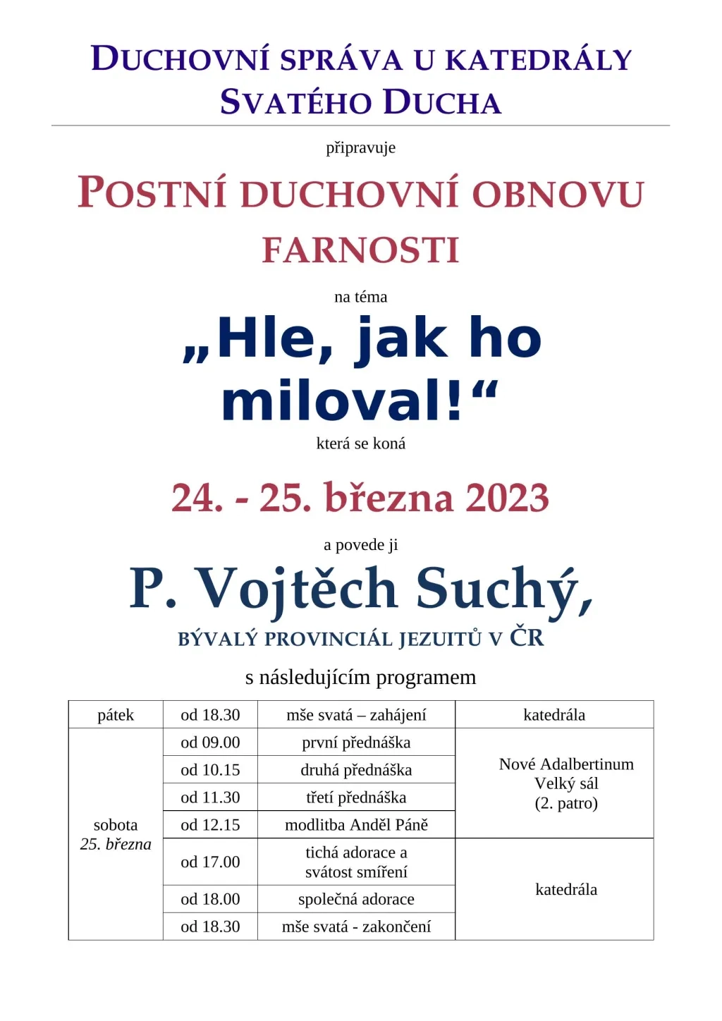 Duchovní správa u svatodušní katedrály v Hradci Králové zve na postní obnovu.