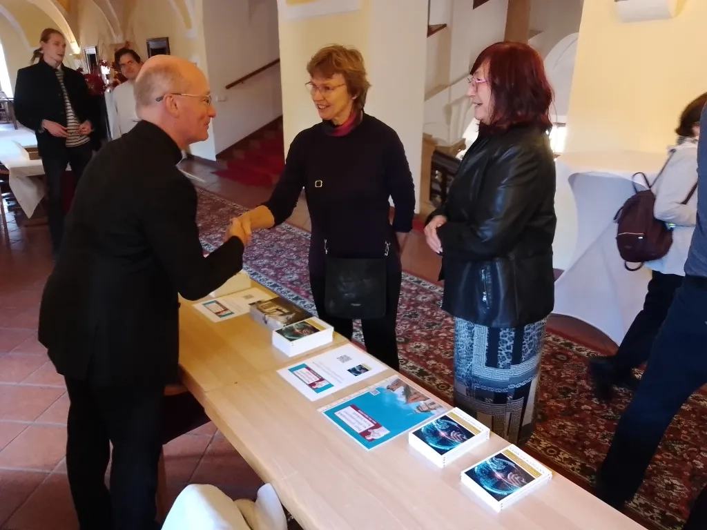 Po bohoslužbě pokračoval program v Novém Adalbertinu, účastníky osobně přivítal biskup Prokop Brož.