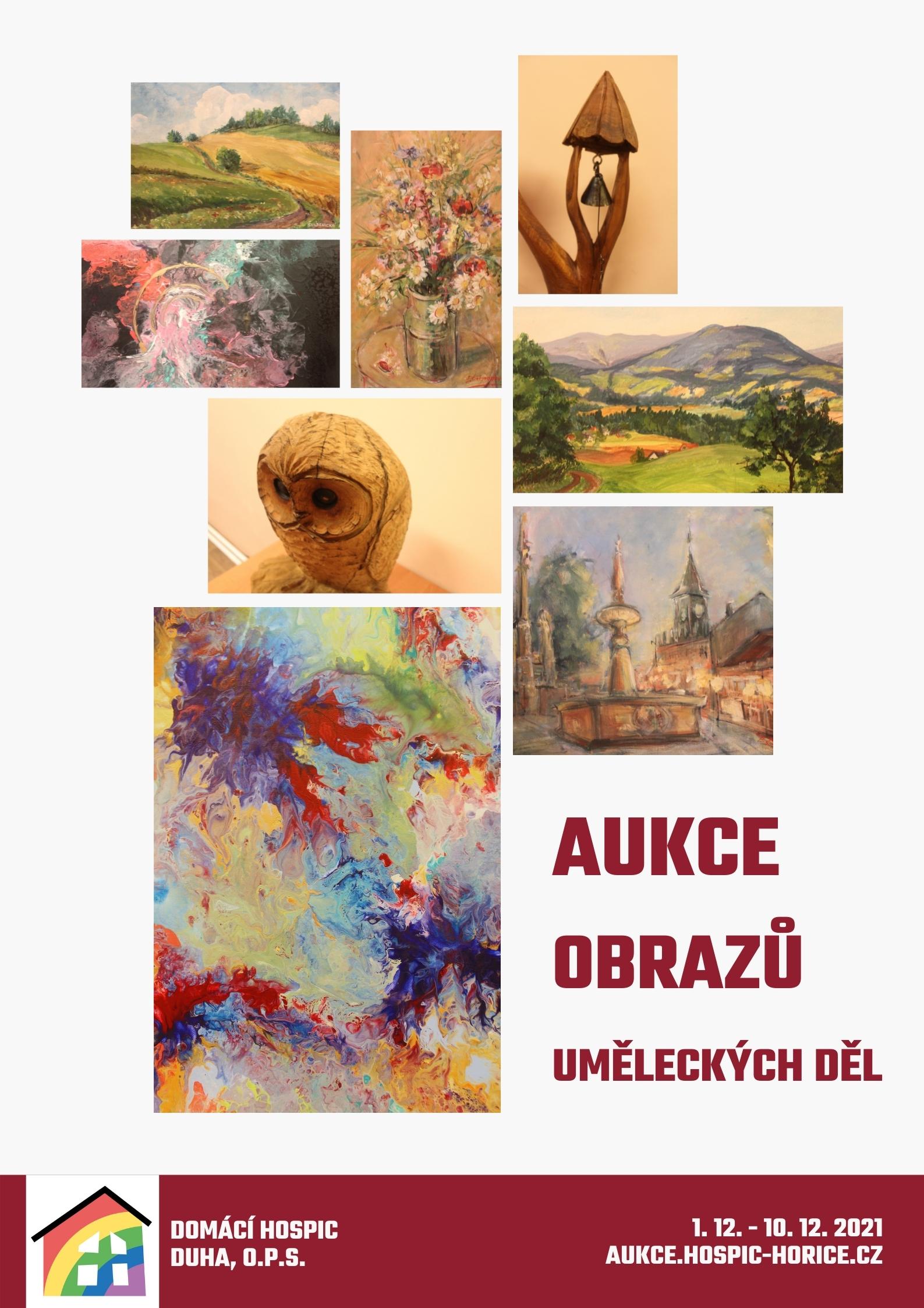 Vydražením uměleckého díla podpoříte projekt rekonstrukce budovy budoucího nového Centra domácí hospicové péče v Hořicích a současně získáte krásnou upomínku na váš charitativní čin. V aukci budou k dispozici díla Evy Šinkmanové, ak. mal. Michala Čady, MUDr. Petra Kašpara, Ludmily Švábenické, Jana Kužela, Pavla Tryzny a dalších. Tým Domácího hospice DUHA.