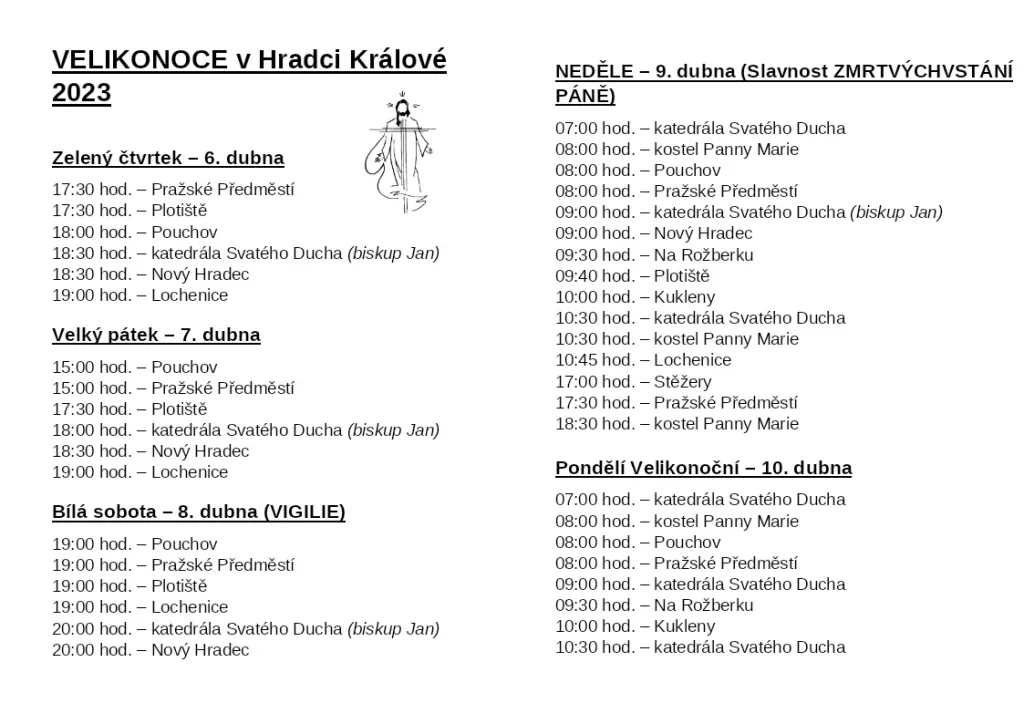 Přehled bohoslužeb konaných v Hradci Králové o letošních Velikonocích.