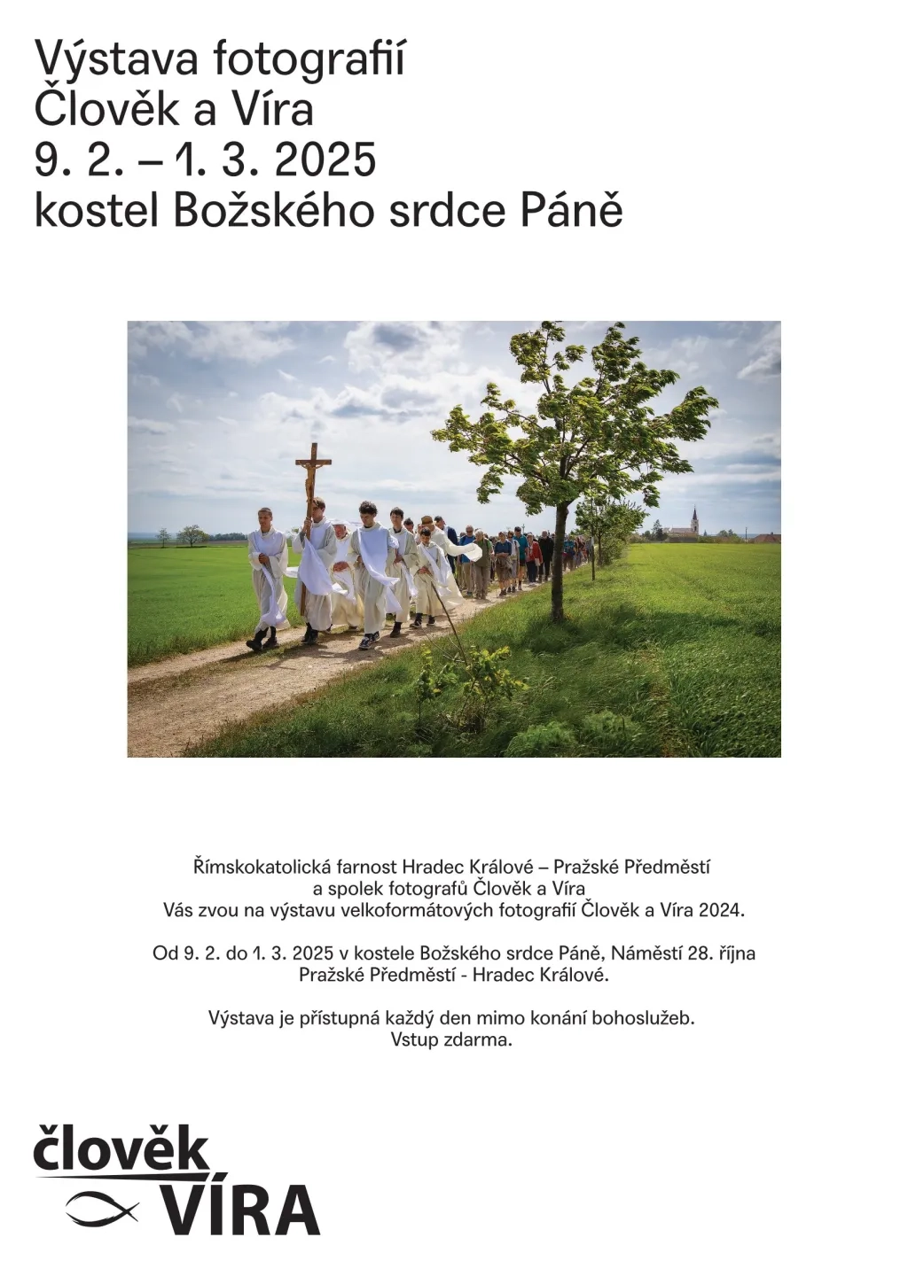 Římskokatolická farnost Hradec Králové - Pražské Předměstí a spolek fotografů Člověk a Víra Vás zvou na výstavu velkoformátových fotografií Člověk a Víra 2024.