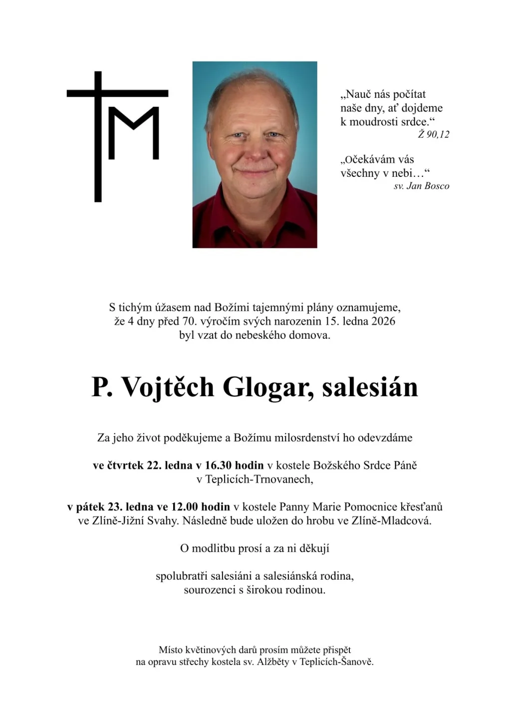 Zádušní mše svatá se uskuteční v Pardubicích, v salesiánském centru, v pátek 23.1. v 18:30.