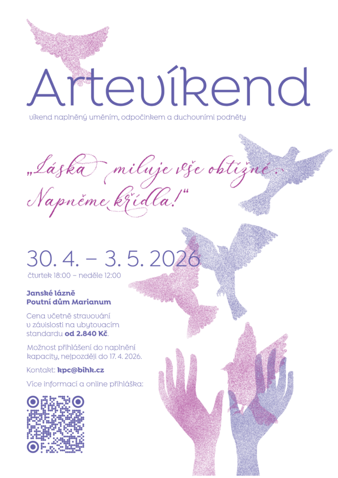 Srdečně vás zveme na třetí ročník akce nazvané Artevíkend. Jedná se o víkend plný umění a tvořivosti, který má sloužit jako forma odpočinku a duchovní obnovy NEJEN pro katechety.