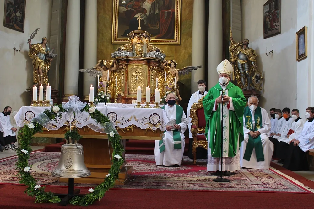 Diecézní biskup Jan Vokál, rodák z Hlinska, požehnal v neděli 27. června dva nové zvony.