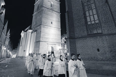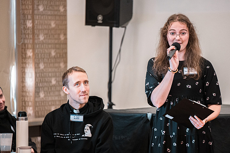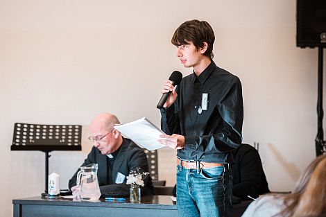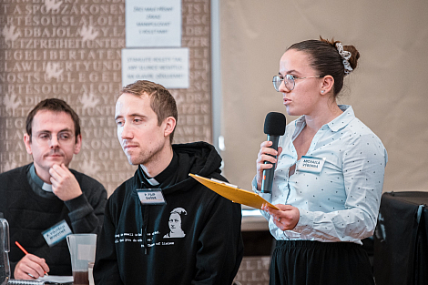 Na Biskupském gymnáziu v Hradci Králové zaplnili mladí delegáti aulu, aby si vyslechli nejprve zamyšlení od pomocného biskupa Mons. Prokopa Brože, ředitele DCŽM Vesmír P. Jana Pitřince a faráře od katedrály Svatého Ducha, liturgika P. Vojtěcha Novotného. Ještě před tím celé shromáždění přivítal diecézní biskup Mons. Jan Vokál, který ve své zdravici zdůraznil úctu k Eucharistii.