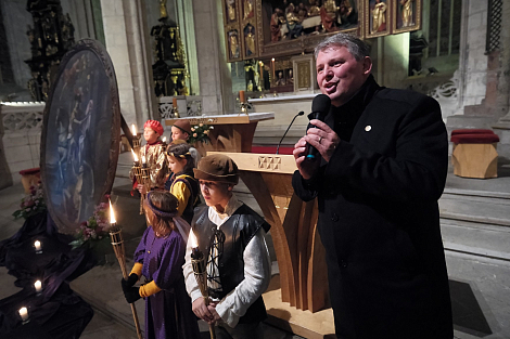 Průvod se vydal od kostela sv. Jakuba k chrámu sv. Barbory, kde byl vystaven obraz sv. Martina.