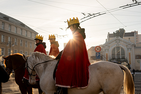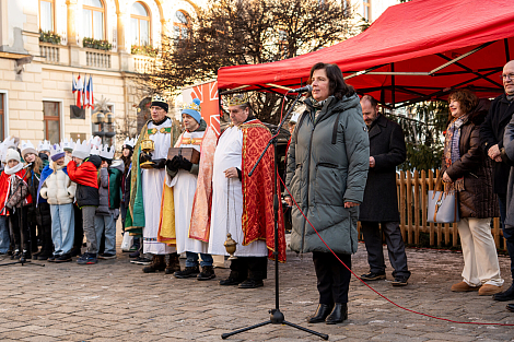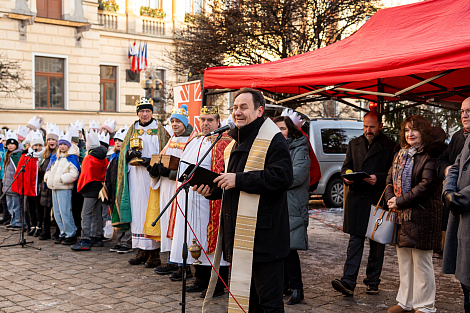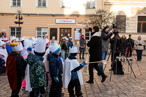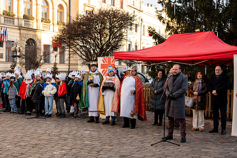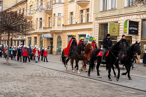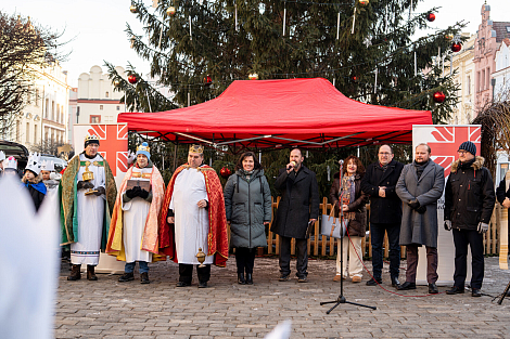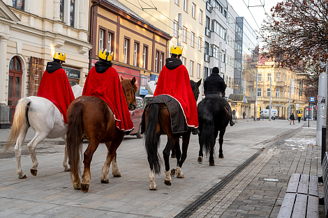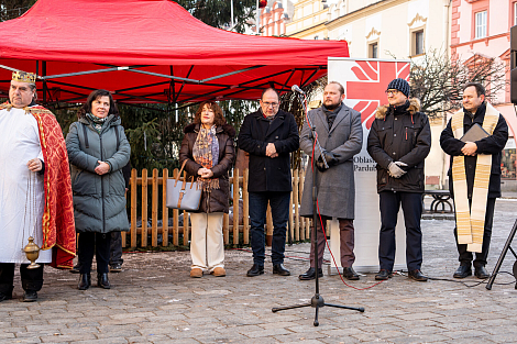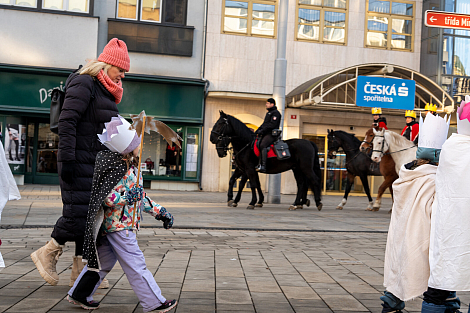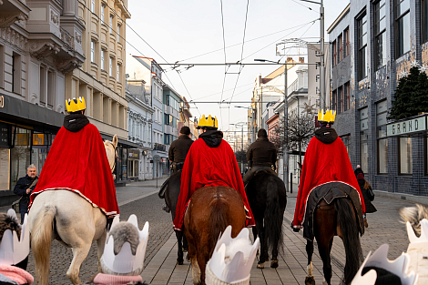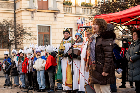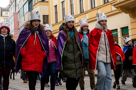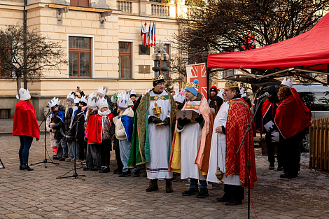 Koledníkům požehnal P. Jan Uhlíř a Tři králové tak mohli vyrazit do ulic Pardubic roznášet radost, úsměv, požehnání a naději.